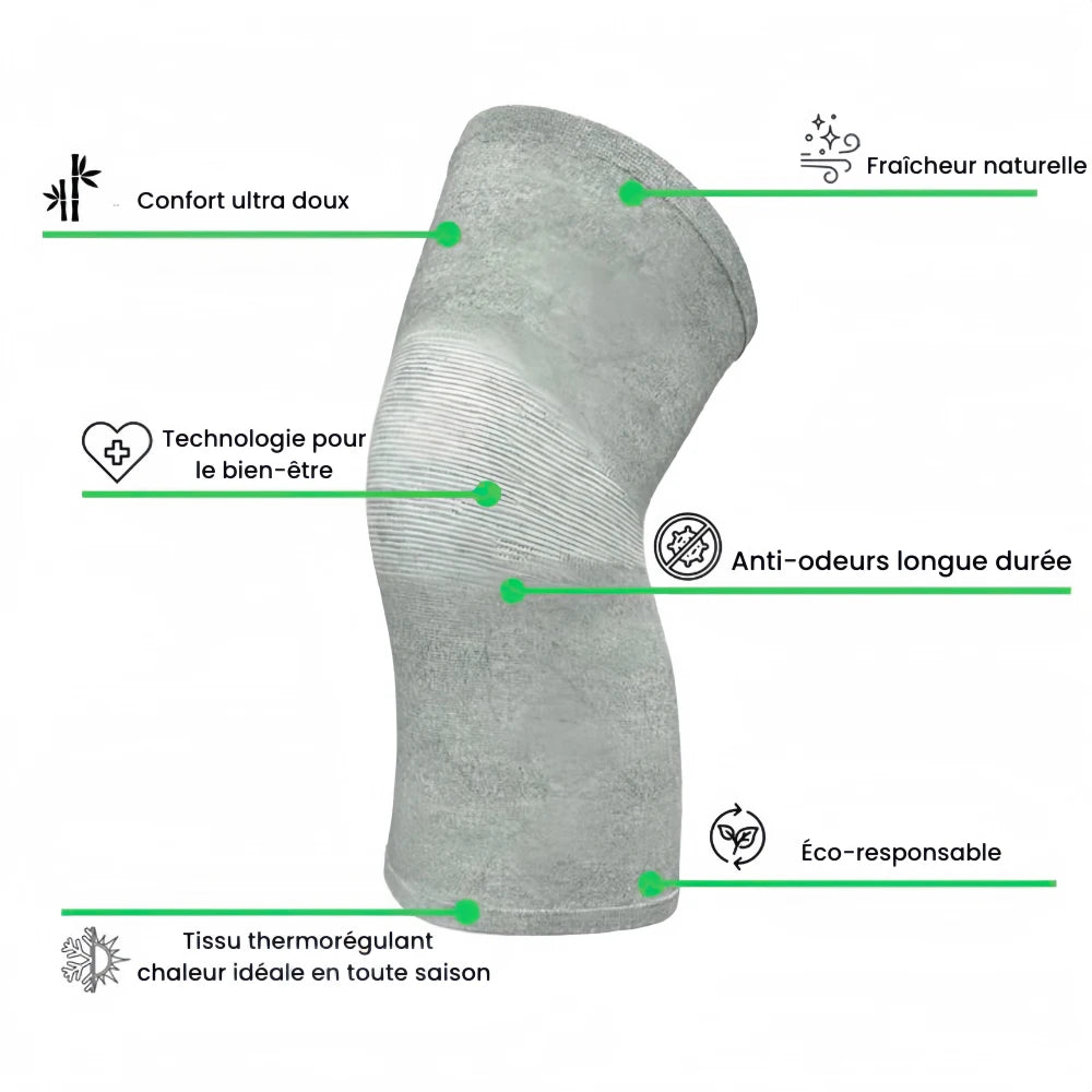 Sa conception associe compression douce, thermorégulation du bambou et fibres élastiques respirantes pour agir à la fois sur la douleur, la mobilité et le confort.