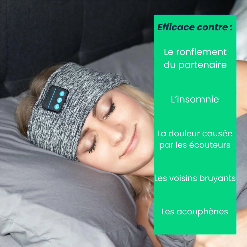 Le bandeau est conçu avec un tissu doux et respirant qui ne serre pas la tête. Les écouteurs intégrés sont plats, ce qui permet de dormir sur le côté sans aucune pression sur les oreilles.